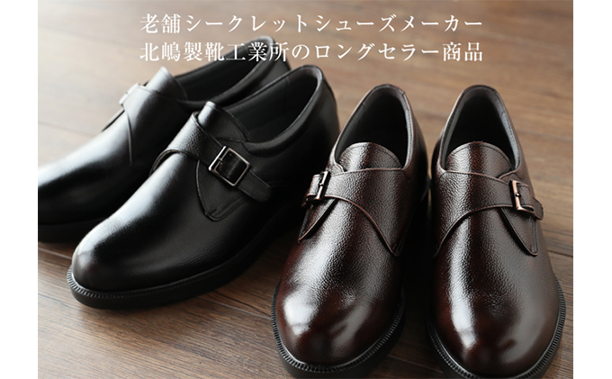- 本革 ビジネスシューズ 革靴 紳士靴 5.5cmアップ モンクプレーン シークレットシューズ No.921 ブラック [№5990-0352]