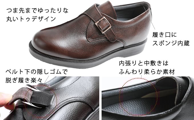 本革 ビジネスシューズ 革靴 紳士靴 5.5cmアップ モンクプレーン シークレットシューズ No.921 ブラック [№5990-0352]