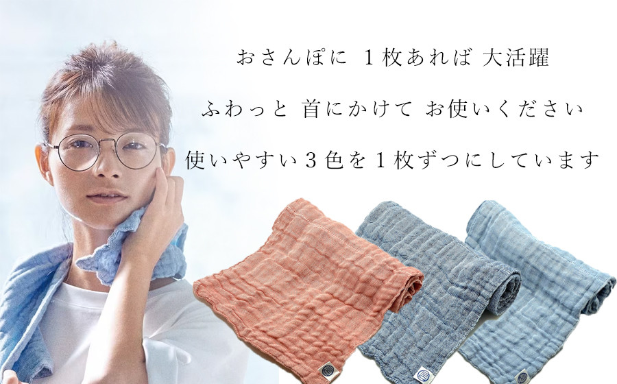 - ORIFURE 蚊帳おさんぽタオル 3色セット/// 日本製 国産 タオル 人気 奈良県 広陵町 織物 伝統 蚊帳生地 柔らかい 肌なじみ