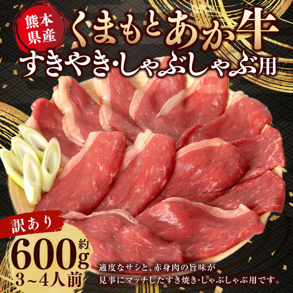 - 【ふるさと納税】【訳アリ】 くまもとあか牛 すきやき・しゃぶしゃぶ用 600g 3~4人前 牛肉 モモ 肩 バラ 混合 赤身 すきやき 鍋 国産 九州 熊本県 送料無料