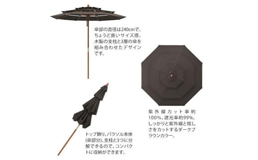 - 34578600 3層パラソル 2.4m ダークブラウン