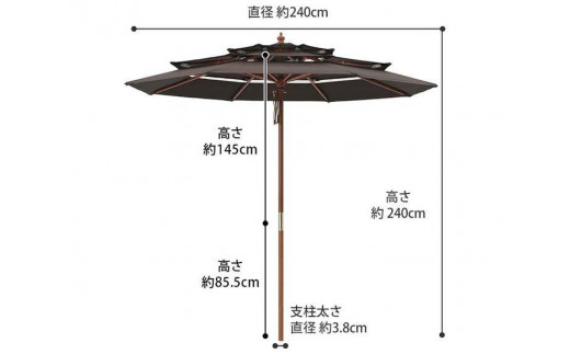 34578600 3層パラソル 2.4m ダークブラウン