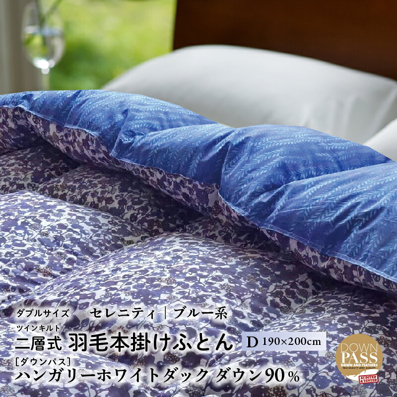 - 【ふるさと納税】 【富士新幸謹製】羽毛布団 本掛け ダブル[セレニティ・ブルー系] ハンガリーホワイトダック ダウン90%※着日指定不可 ふるさと納税 掛け布団 かけ布団 布団 羽毛 ダウン ダックダウン 寝具 山梨県 道志村 送料無料 DSI029