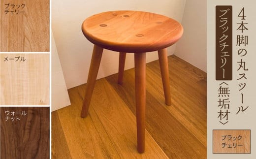 4本脚の丸スツール ブラックチェリー無垢材 106001