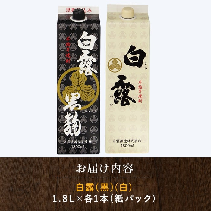 - 【白露酒造】白露黒・白露白 (25度) 1.8Lパック×2本セット(岡村商店/015-1142) 焼酎 芋 さつまいも 酒 アルコール 蔵 特選 酒造 鹿児島 飲み比べ お試し さつま白露 白麹 黒麹