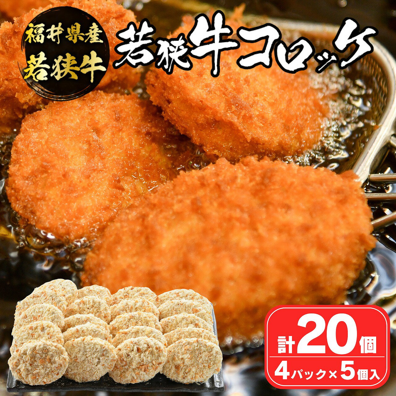 - 【ふるさと納税】福井県産 若狭牛 コロッケ 冷凍 20個入り | 肉 牛肉 和牛 黒毛和牛 高品質 高級 国産 お取り寄せ ギフト 冷凍 食品 惣菜 揚げ物 フライ 手作り じゃがいも ジャガイモ 80g × 5個 セット/ 4袋 おすすめ お肉 料理 グルメ 送料無料