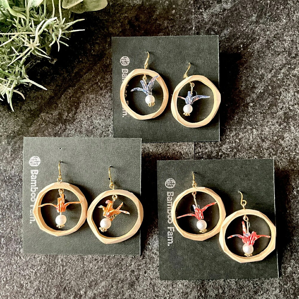- 【ふるさと納税】 兵庫県 産天然竹 アクセサリー 竹と折り鶴 (ピアス)【 兵庫県 高砂市 ふるさと納税】