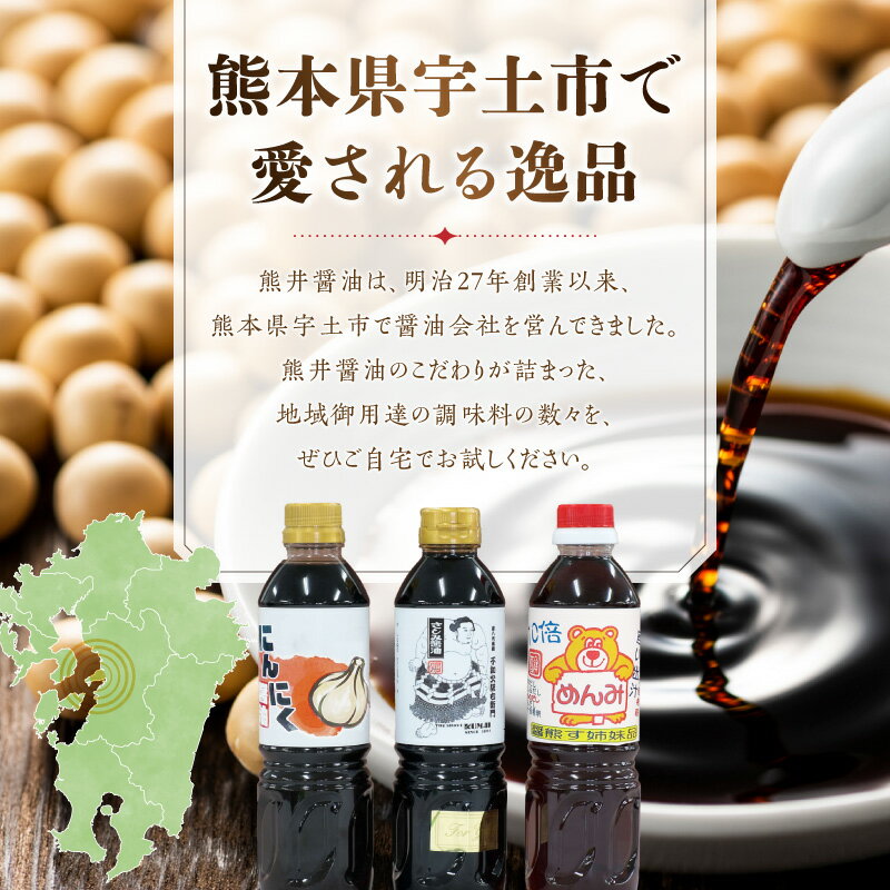 【ふるさと納税】熊井醤油 醤油(高級さしみ・にんにく・めんみ)3本セット【熊本県宇土市】