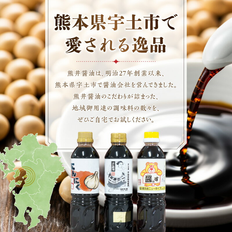 【ふるさと納税】熊井醤油 醤油(高級さしみ・にんにく・醤熊す)3本(500ml)セット【熊本県宇土市】
