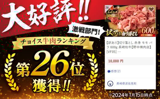 - 【全6回定期便】【訳あり】切り落とし 赤身 モモ バラ 600g 長崎和牛 A4~A5ランク ワケあり 小間切れ【野中精肉店】 [VF23] 肉 牛肉 こま切れ A4~A5ランク 訳アリ ワケあり しゃぶしゃぶ すき焼き 定期便