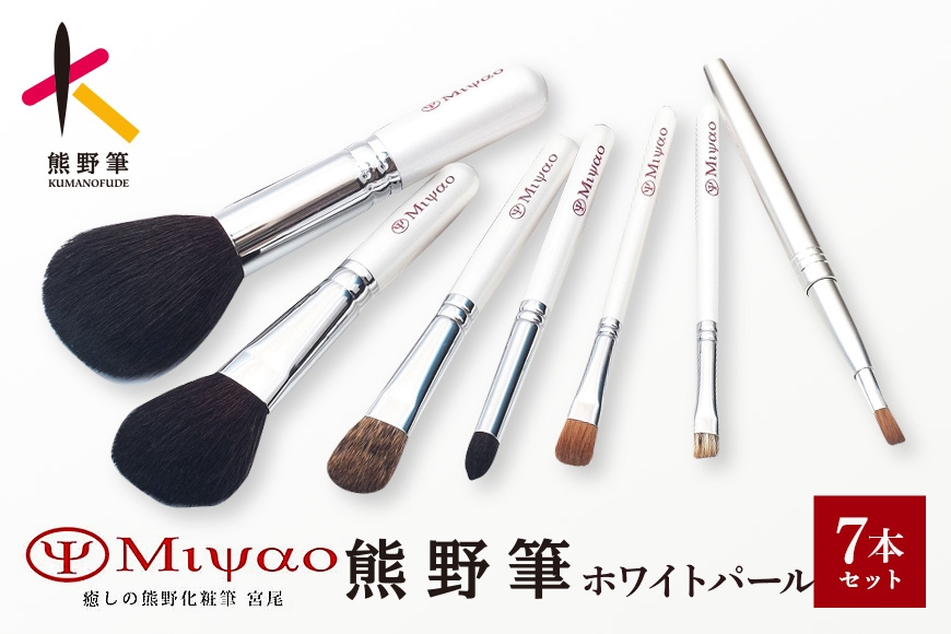 - 熊野化粧筆 メイクブラシ デラックス・7本セット ホワイトパール[ショート軸タイプ]
