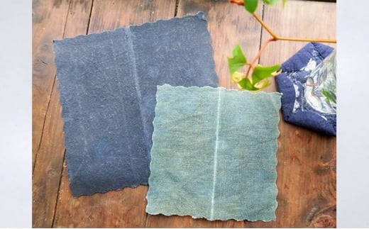 - [№5256-0201]藍染草木染エコラップ2枚セット(S,M)