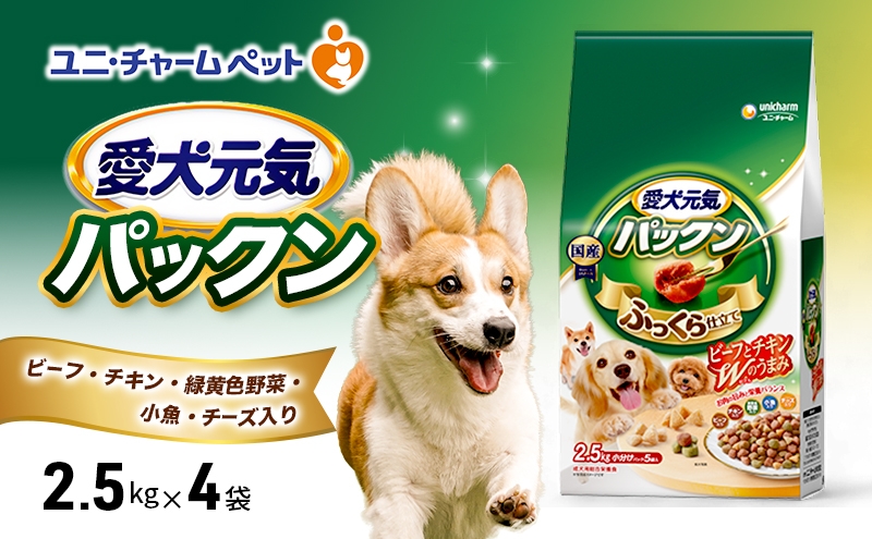 愛犬元気パックン ビーフ・チキン・緑黄色野菜・小魚・チーズ入り 2.5kg×4袋 [№5275-0485]