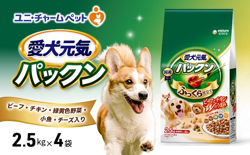 - 愛犬元気パックン ビーフ・チキン・緑黄色野菜・小魚・チーズ入り 2.5kg×4袋 [№5275-0485]