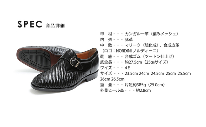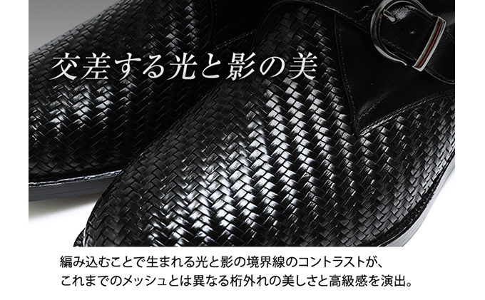 - ビジネスシューズ 本革 革靴 カンガルー革 通気性 メッシュ モンク 紳士靴 4E ワイド No.1275 ブラック [№5990-0416]