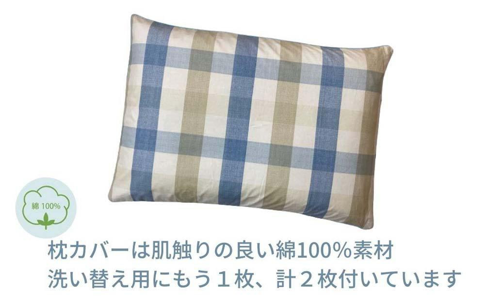 - 《パイプ枕 カバー2枚付 43x63cm チェック ブルー》パイプ大マドラスBL