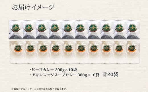 - 528. ビーフカレー チキンレッグ スープカレー 食べ比べ 20個 牛肉 レトルトカレー 備蓄 北海道 弟子屈町
