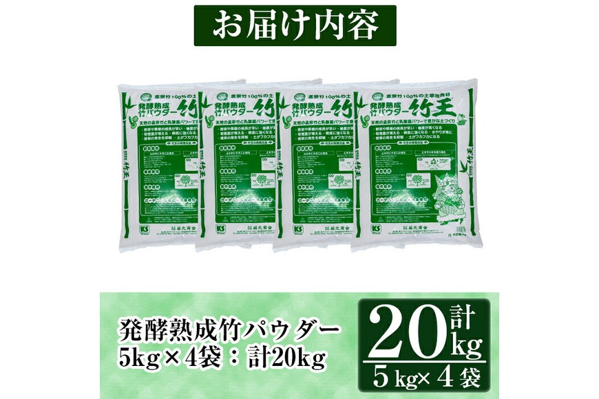 - a876 「薩摩の竹づくし」竹王20kgセット(計20kg・5kg×4袋)【株式会社国元商会】竹パウダー 竹 土づくり マルチング 土壌改良 肥料 家庭菜園 ベランダ菜園 プランター 自然栽培 自然農法 有機栽培