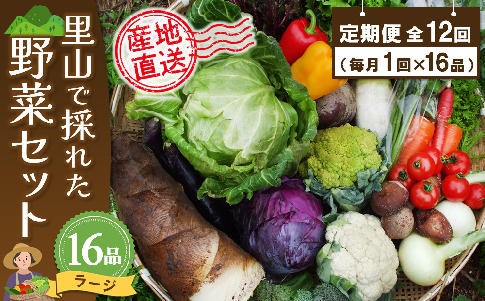 - 年間定期便12回 里山で採れた野菜セットラージ 16品 【有機野菜 おまかせ野菜セット イタリア野菜 西洋野菜 定期便】(H078110)