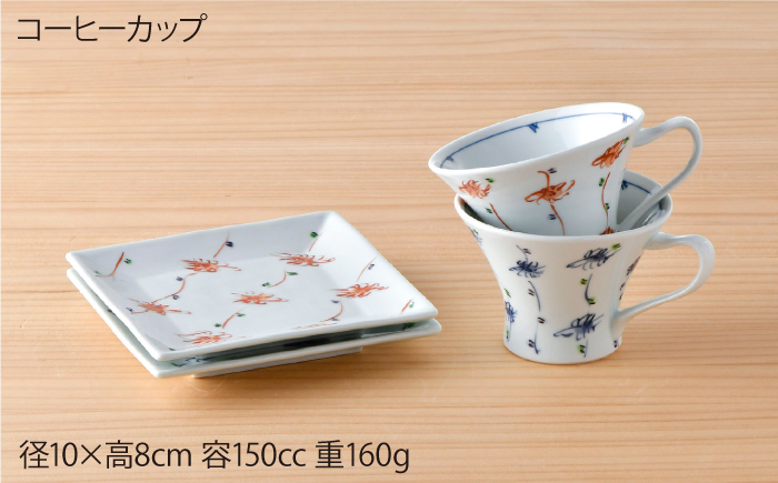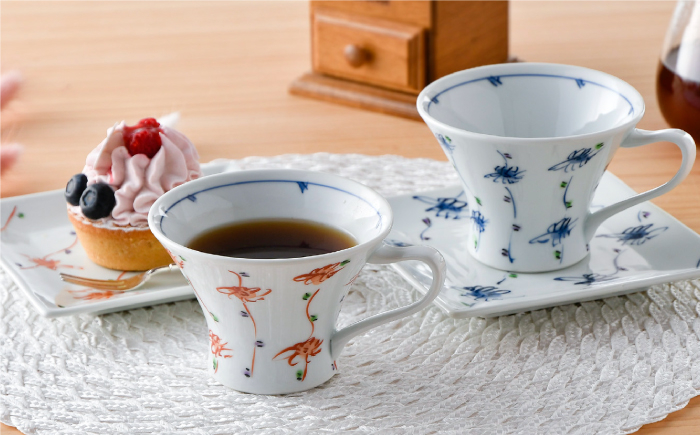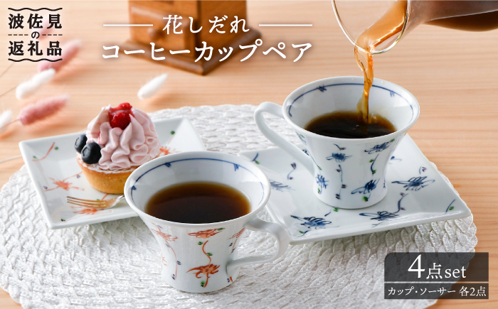 - 【波佐見焼】花しだれコーヒーカップペア マグカップ ケーキ皿 食器 食器 皿 【一夢窯】 [XE06]