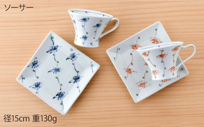 【波佐見焼】デイジー (青・グレー) コーヒーカップ&ソーサー ペアセット 食器 皿 【西山】【NISHIYAMAJAPAN】 [CB115] 父の日
