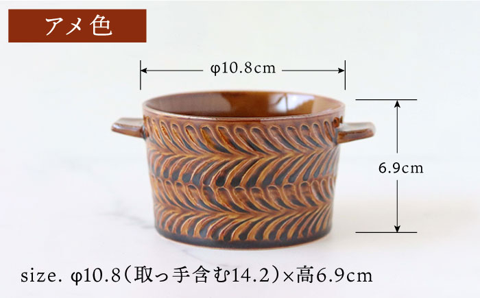 - 【波佐見焼】ローズマリー ココット Tボウル アメ・オリベ ペアセット 食器 皿 【翔芳窯】 [FE152]