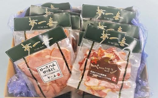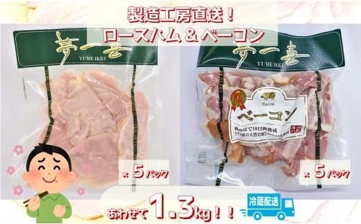 - 『夢一喜』【訳あり】ロースハム&ベーコン切落し130g 各5パック計1.3kg