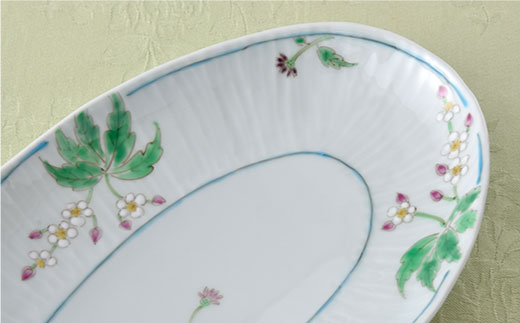 【まるふくオリジナル】有田焼 染錦花弁紋楕円皿(大)(小)2枚セット 手描き 和食器 取皿 ペア お正月 赤 青 A22-16