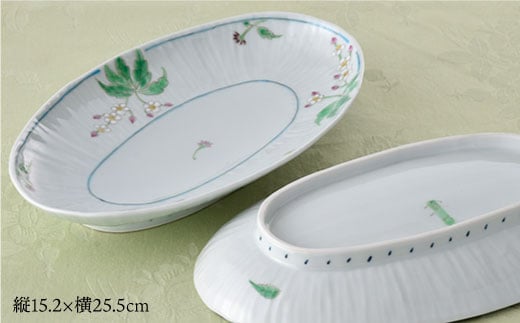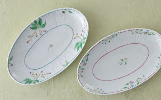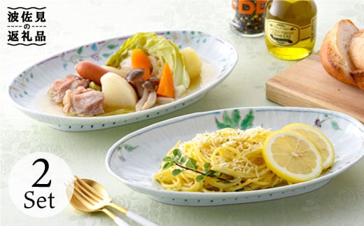 【波佐見焼】草花紋 長楕円皿 ボウル 2枚組み 食器 皿 【藍水】 [GB16]
