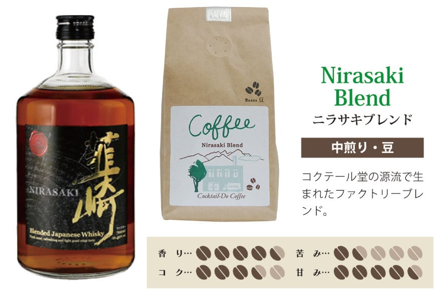- 韮崎ウイスキー 700ml×1本 & コーヒー 韮崎ブレンド 豆 200g×1袋 [まあめいく 山梨県 韮崎市 20742045] ウイスキー 酒 ウィスキー 晩酌 珈琲 焙煎 ブレンド モカ