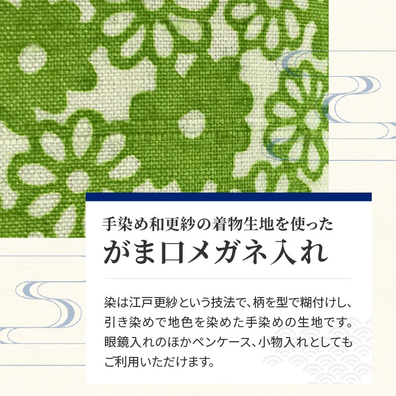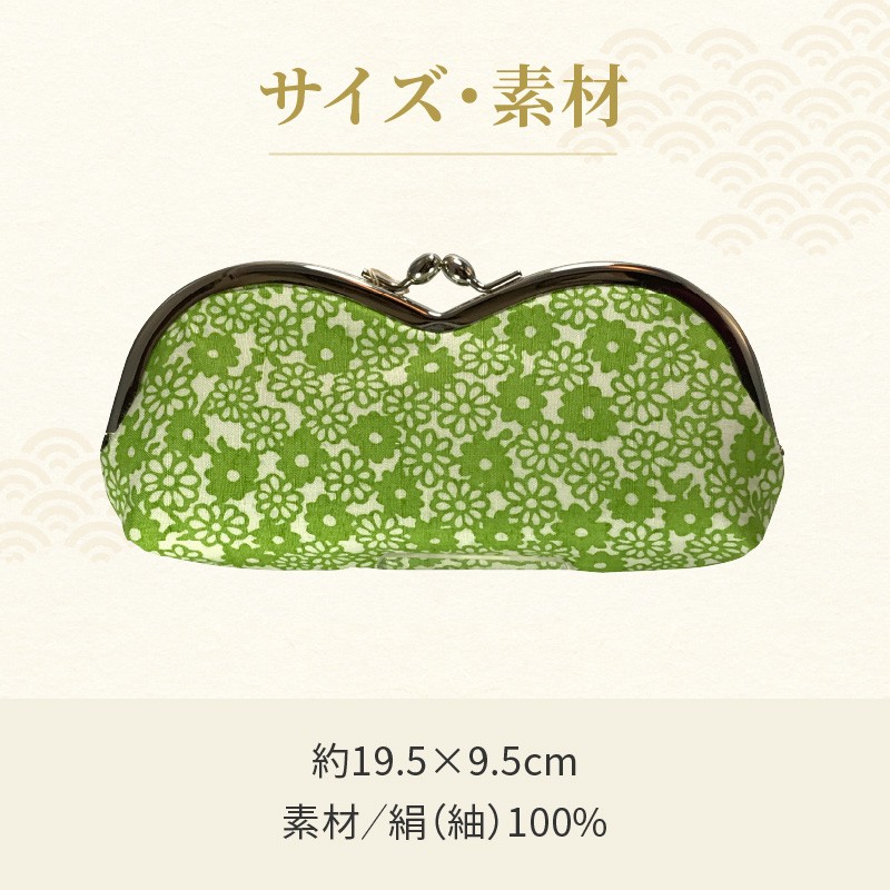 - がま口メガネ入れ 小花 黄緑