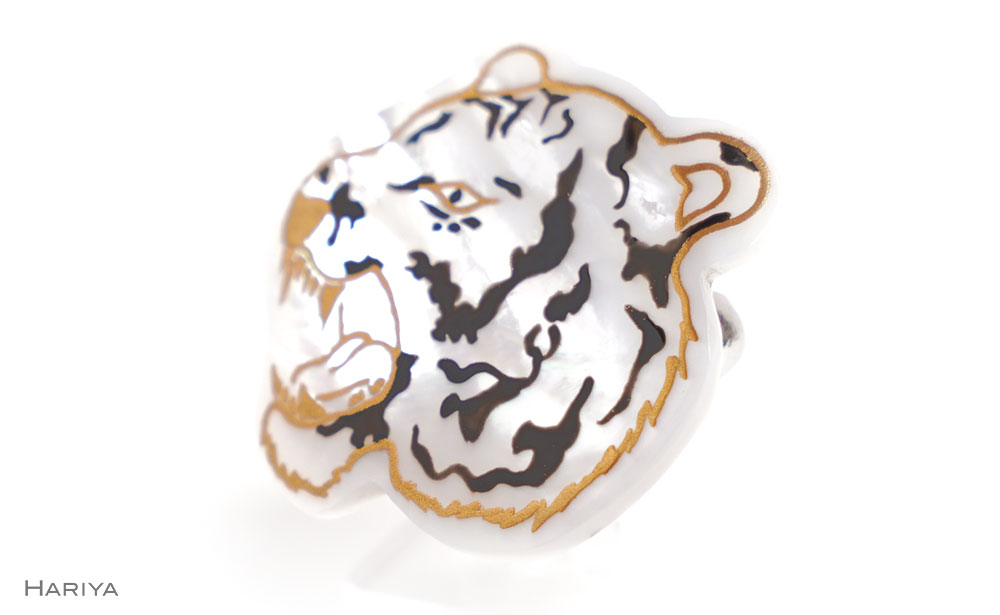 寅蒔絵 白蝶貝ブローチ