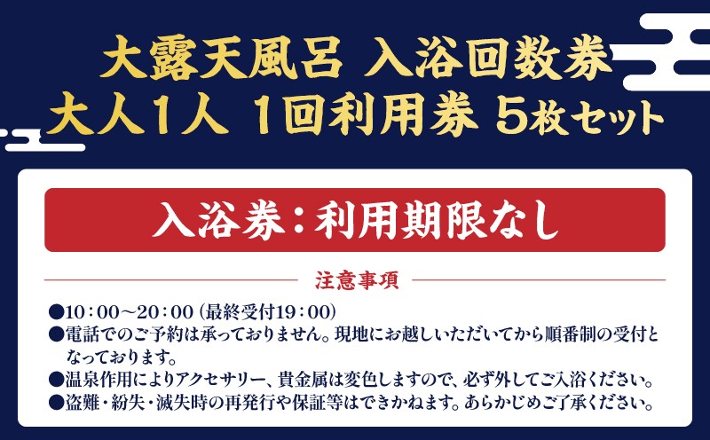 - 【効能たくさん!白濁の硫黄泉】絶景!大露天風呂入浴回数券(大人5回券)