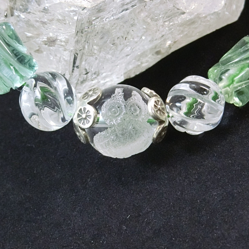 - 天然石ブレスレット「癒しのフクロウ」恋愛運【007B-082】