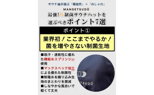 【MANGETSUDO】 最強!W制菌 サウナハット 男女兼用 フリーサイズ/シルバー 65-AO