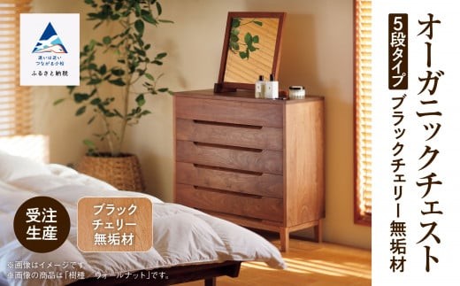 - 【無垢材が呼吸して衣類を守る】オーガニックチェスト 5段タイプ ブラックチェリー無垢材.D00035