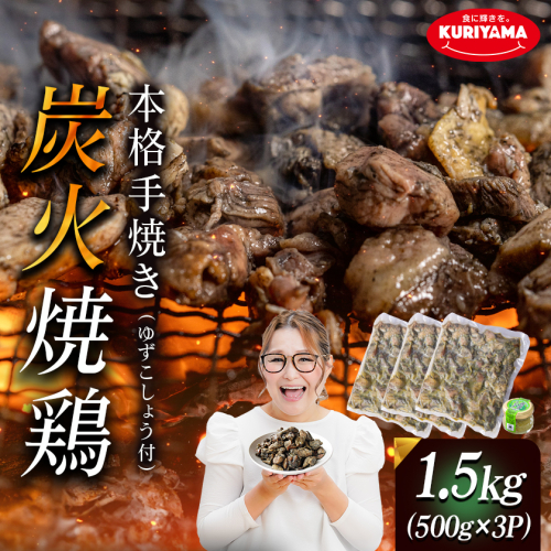 - 本格手焼き!炭火焼鶏1.5kg(500g×3P)ゆずこしょう付_AA-1413