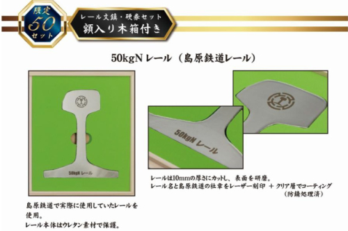 AG127【数量限定】島原鉄道 レール文鎮・硬券セット<額入り木箱付き>