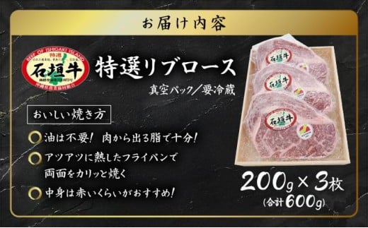 - 石垣牛リブロースステーキ200g×3枚 【沖縄 琉球 八重山 八重山諸島 石垣 石垣島 高級 肉 ロース 黒毛和牛 和牛 石垣牛 牛 ステーキ肉 大人気 セット 国産 石垣牛100%】A-5