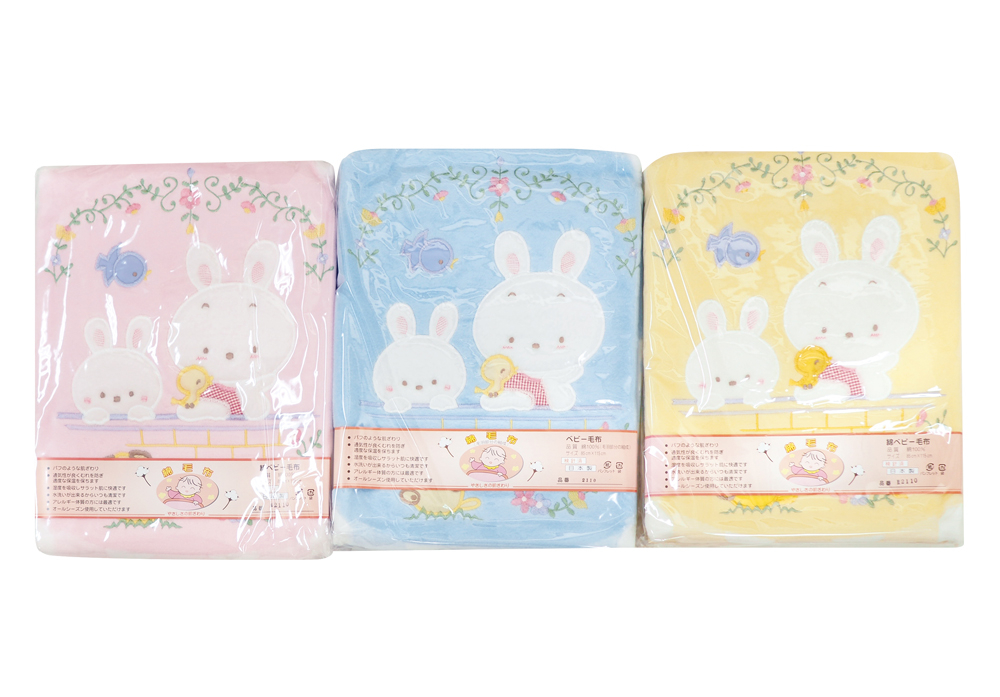 ベビー用 綿毛布 親子ウサギ 85×115cm イエロー(クリーム) 1枚 2110 [1928]