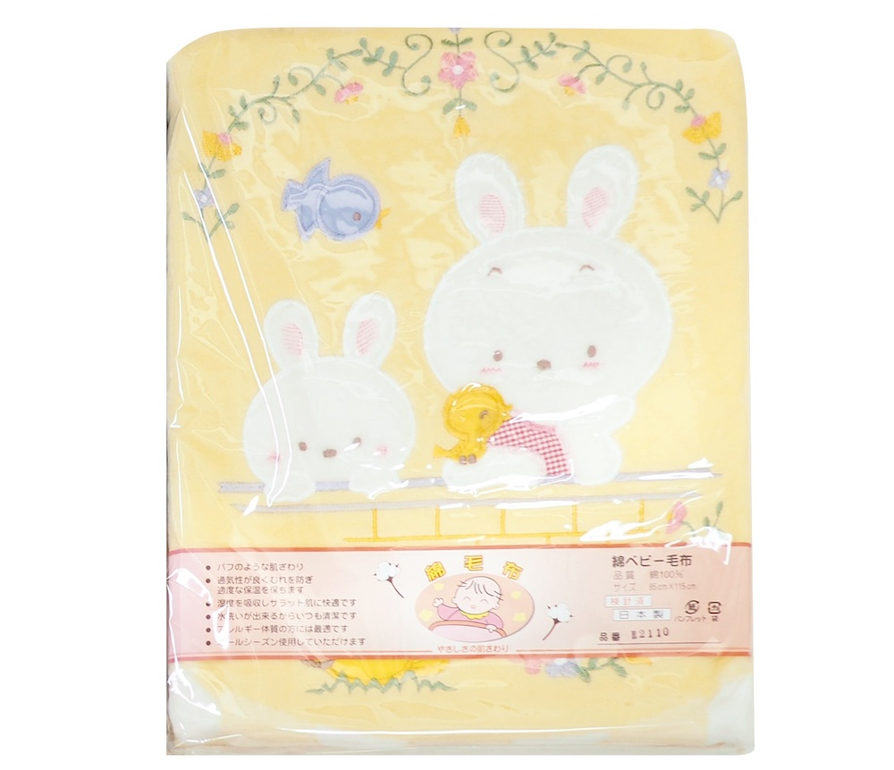 - ベビー用 綿毛布 親子ウサギ 85×115cm イエロー(クリーム) 1枚 2110 [1928]