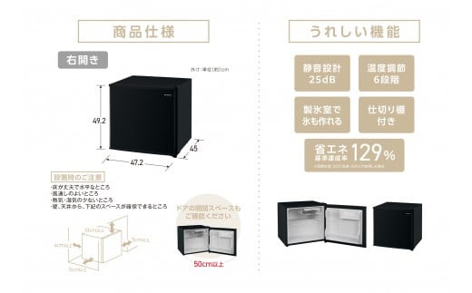 - 冷蔵庫 45L IRSD-5A-B ブラック右開き 1ドア 45リットル 冷蔵 コンパクト 一人暮らし ひとり暮らし 家電 単身 キッチン 台所 アイリスオーヤマ