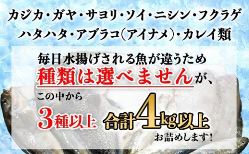 北海道森町産 噴火湾とれたて鮮魚福袋4kg以上 アブラコ(アイナメ) カレイ類 カジカ ソイ ガヤ ニシン 福袋 鮮魚 海鮮 セット 焼き魚 煮付け 鍋 ふるさと納税 北海道 森町 mr1-0149