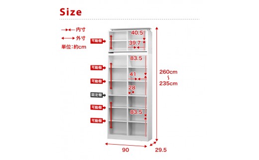 - シェルフ9018 + 突っ張り耐震 上置き セット ホワイト aku100446992