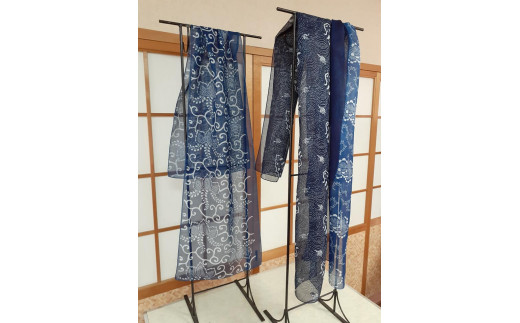 - H133 河内木綿文様、肌に優しい藍手染めストール【絵柄1】