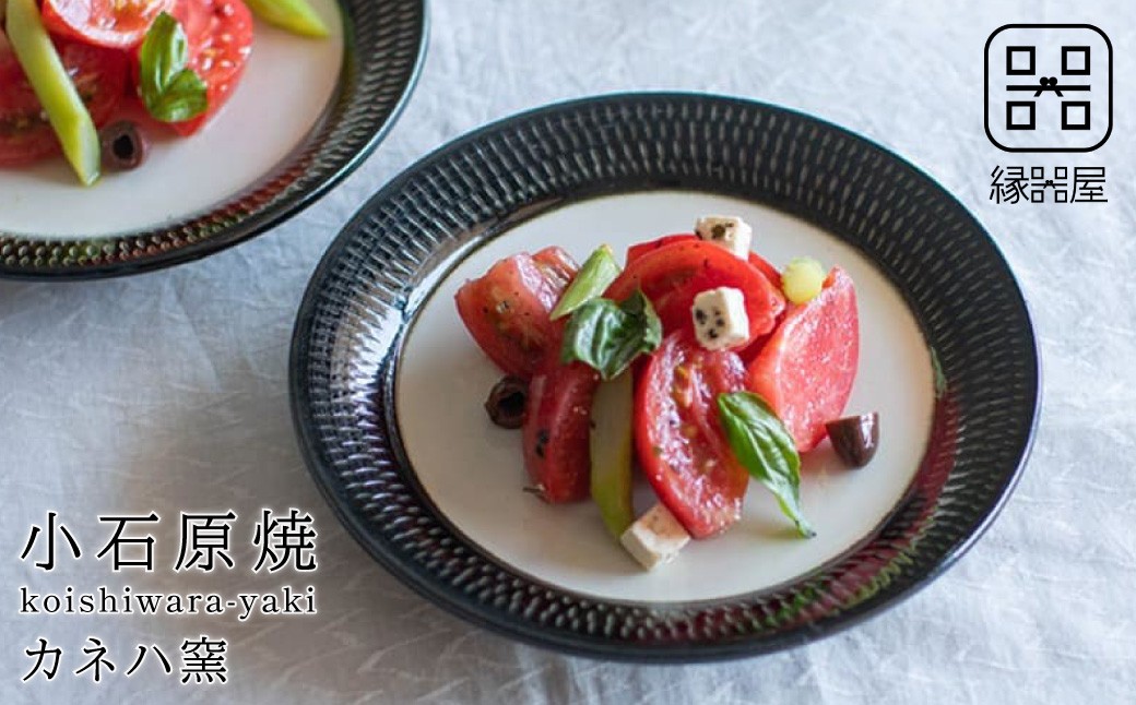 - AA30 小石原焼 カネハ窯 飛び鉋プレート【大】(黒×白ツヤ)