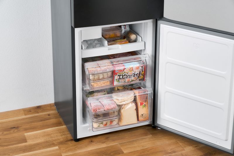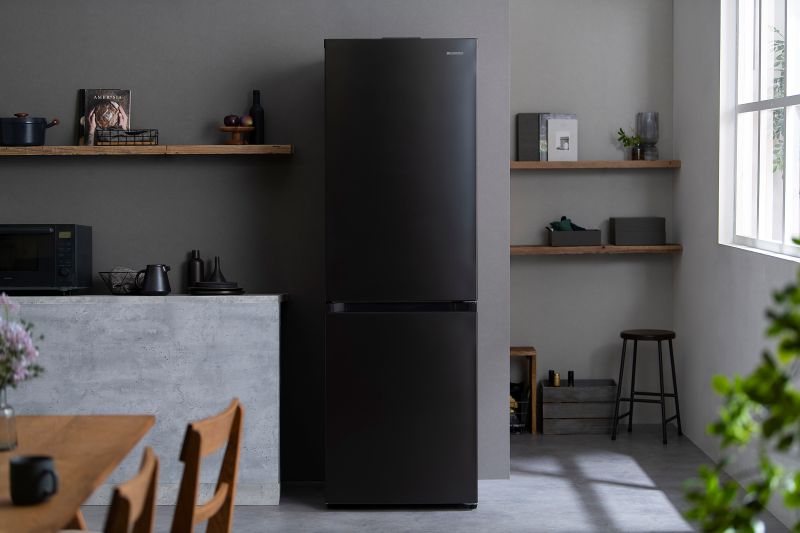 アイリスオーヤマのカメラ付き冷蔵庫です。301リットルの大容量で、冷蔵室は210リットル、冷凍室は91リットルのスペースです。庫内カメラ「ストックアイ」が搭載されており、冷蔵庫の中身をアプリで確認可能です。奥行き約46cmの冷蔵室は、奥まで見やすく、取り出しやすい設計です。冷凍室は引き出し式で、3種類の収納があり、食材を整理しやすくなっています。右開きの2ドアタイプで、使い勝手も抜群です。