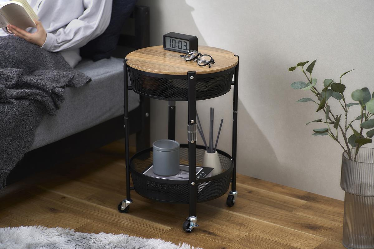 - ワゴン マルチワゴン 丸型2段 MUW-R2 ブラック アイリスオーヤマ キャスター付き 天板 折りたたみ キッチンワゴン 2段 北欧 おしゃれ 丸型 台所 ラック リビング ランドリー ストッカー 収納 マルチワゴン