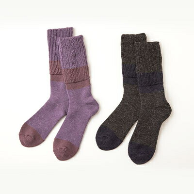 【ふるさと納税】口ゴム超ゆったり足首あったか靴下 25-27 パープルとチャコール【1449388】