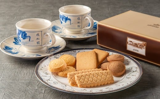 - 花巻温泉佳松園コーヒーカップ・ソーサー(台焼)ペアセット&クッキーS箱(17枚入) 【1201】